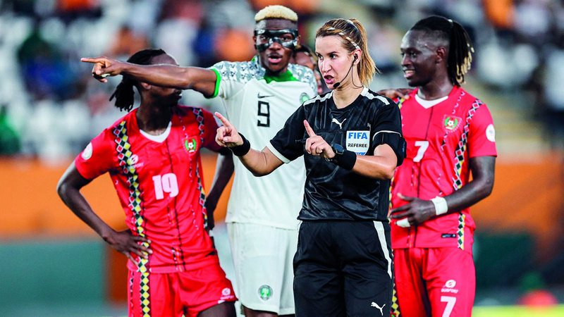 بشرى كربوني أدارت مباراة نيجيريا وغينيا بيساو أول من أمس. أ.ف.ب