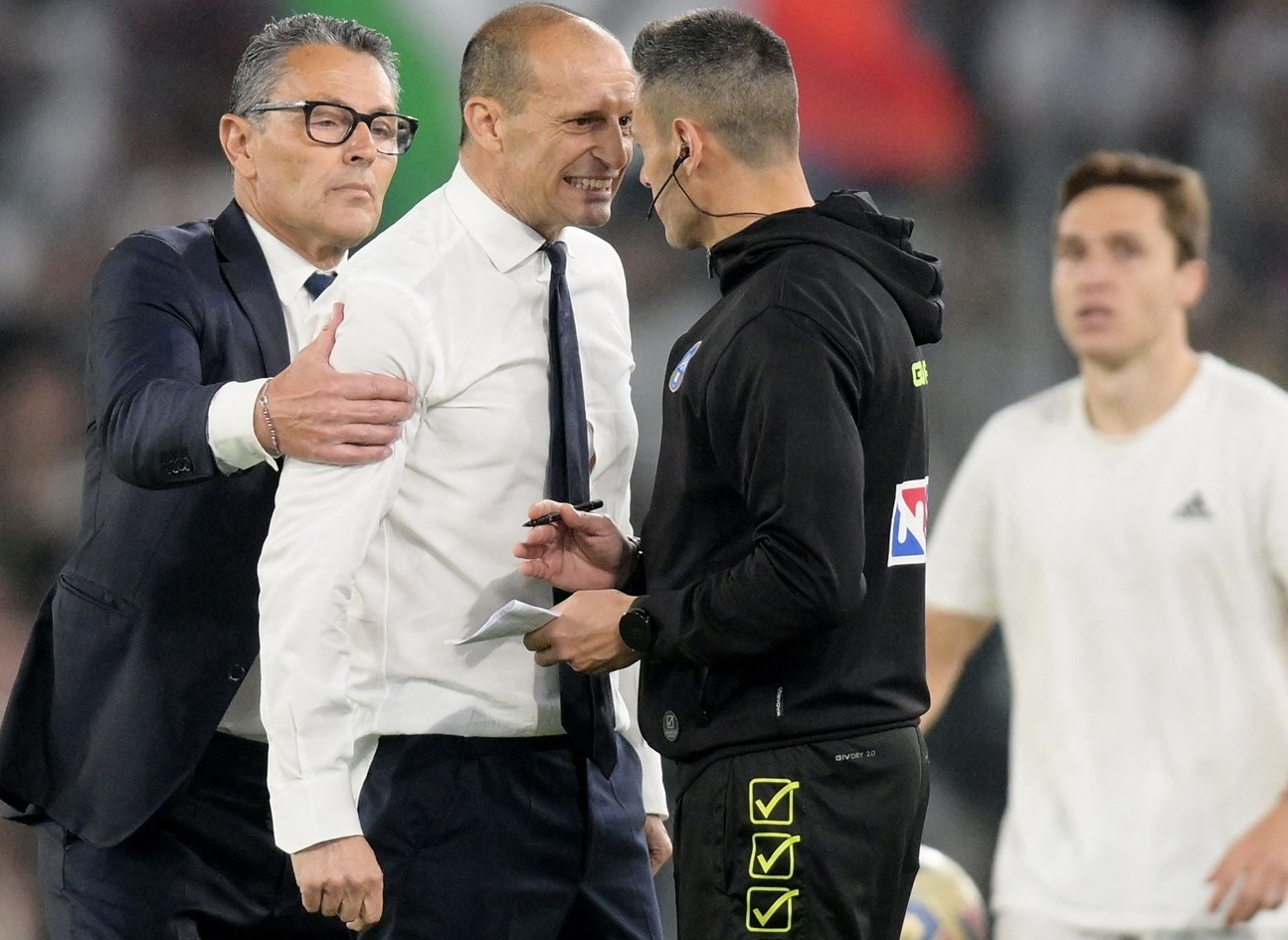 ولم يكتفِ أليغري بمهاجمة الحكّام، بل أظهرته مقاطع الفيديو وهو يُهاجم المدير الرياضي في النادي كريستيانو جيونتولي على أرض الملعب بعد نهاية المباراة، كما هدّد مدير تحرير يوميّة "توتوسبورت" في طريقه إلى المؤتمر الصحافي.