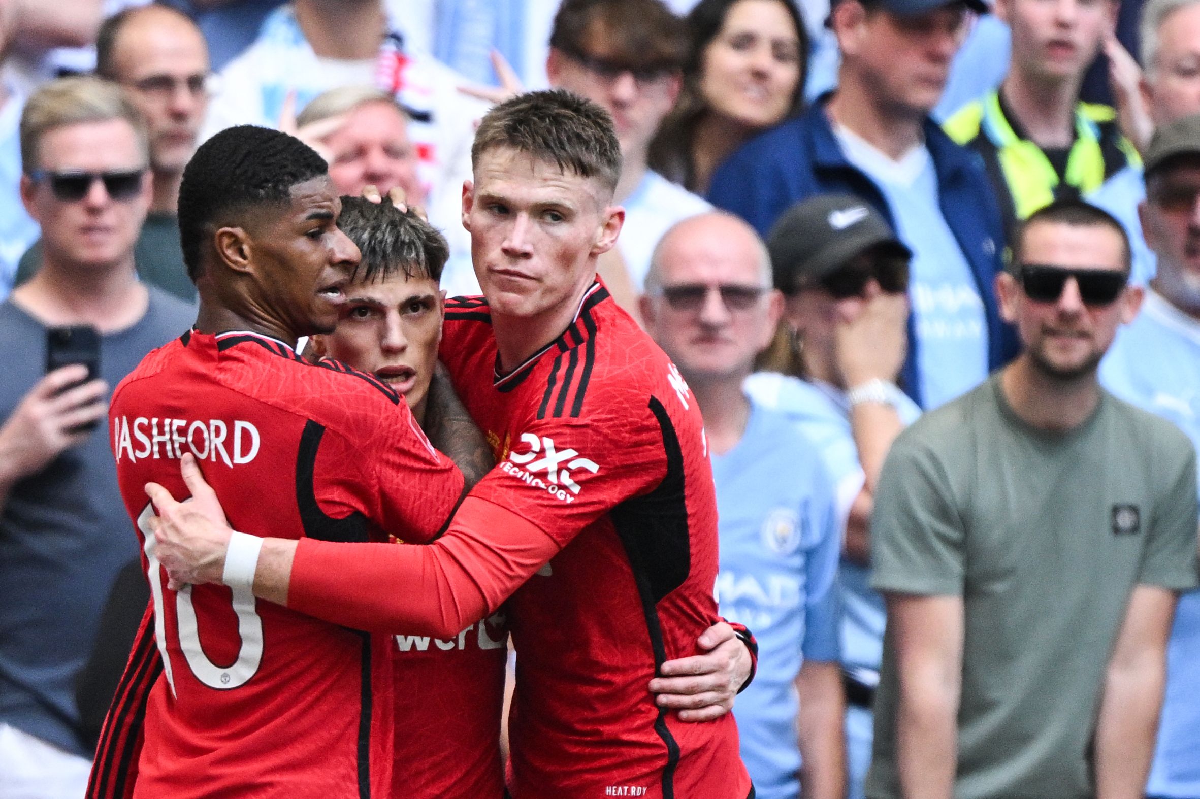 وبعدما بات أول فريق يحرز الدوري أربع مرات متتالية، كان سيتي مرشحاً كي يصبح أول من يحرز ثنائية الدوري والكأس لموسمين توالياً، لكن يونايتد فاجأه وثأر لخسارته نهائي العام الماضي 1-2، بتغلبه عليه بهدفين للشابين الأرجنتيني أليخاندو غارناتشو (30) وكوبي ماينو (39)، مقابل هدف للبلجيكي جيريمي دوكو (87).
