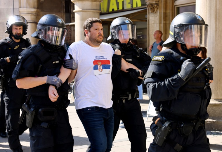 أصيب 10 أشخاص على الأقل، من بينهم 9 أفراد شرطة، بجروح طفيفة خلال اشتباكات مع مشجعين لمنتخب صربيا في وسط مدينة ميونخ الألمانية، وذلك قبل مواجهة دور المجموعات في بطولة "يورو 2024" بين الدنمارك وصربيا، حسبما ذكرت الشرطة في ساعة مبكرة من صباح اليوم الأربعاء.