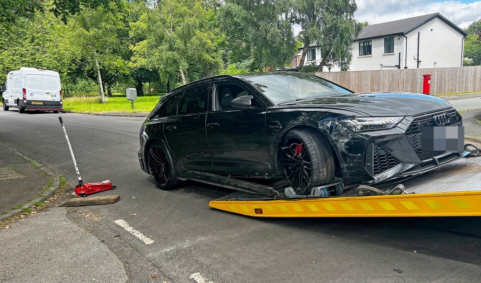 وتظهر الصور السيارة السوداء، التي تبلغ قيمتها 220 ألف جنيه إسترليني، وقد تعرضت لخدوش كبيرة في الجناح الأمامي لجهة الراكب، إضافة إلى ضرر قد لحق بالعجلة الأمامية لجهة الراكب، وأظهرت صورة أخرى السيارة وهي موضوعة على الجزء الخلفي لشاحنة السحب.