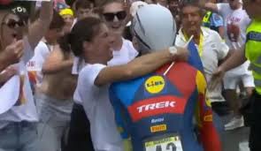 حدث في طواف فرنسا.. دراج قرر تقبيل زوجته في السباق كان هذا مصيره