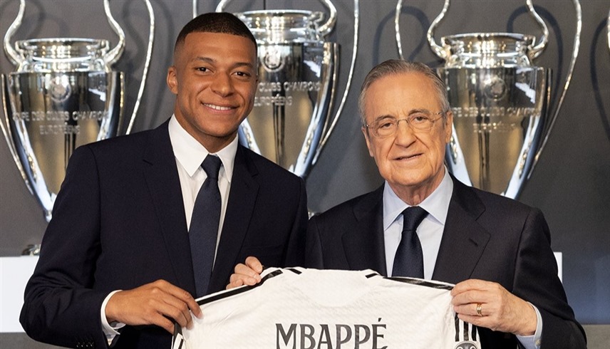 وقع الفرنسي كيليان مبابي، اليوم الثلاثاء، مع ريال مدريد للمواسم الخمسة المقبلة، في حضور رئيس النادي، فلورنتينو بيريز.