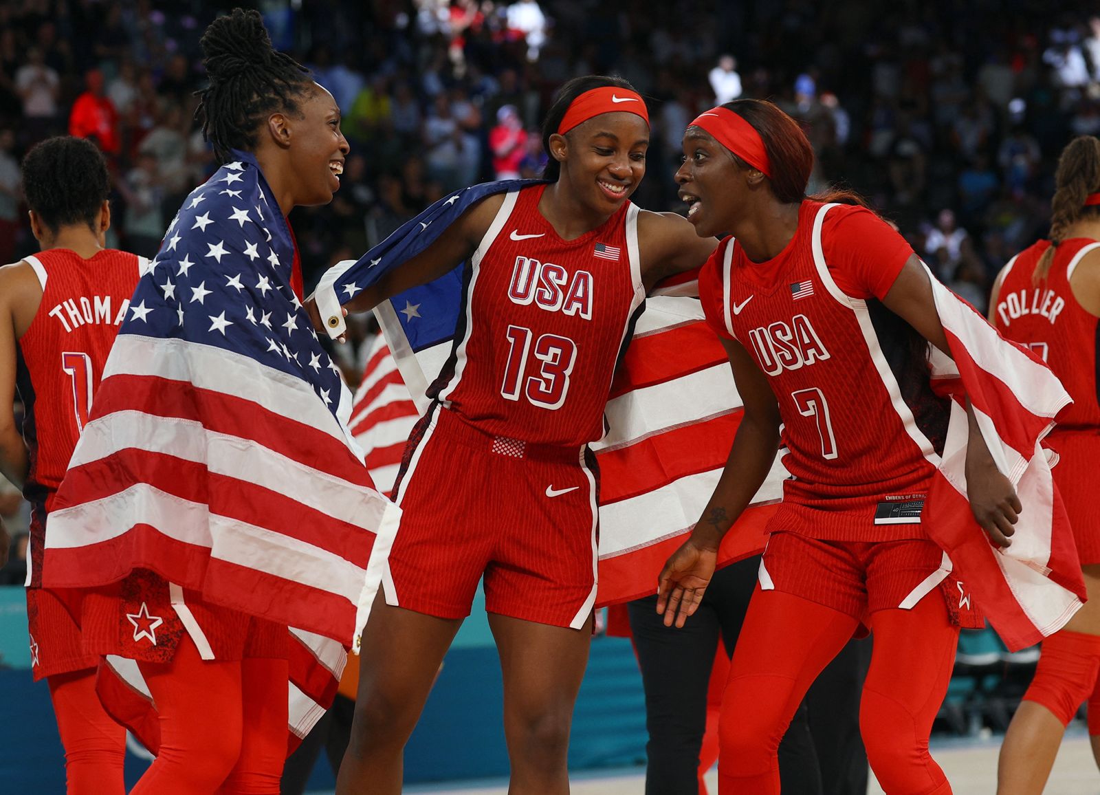 وجاء تتويج منتخب السلة الأمريكي باللقب الأولمبي للمرة الثامنة توالياً والعاشرة من أصل 12 مشاركة، بعد يوم من فوز منتخب الرجال باللقب الخامس توالياً بتغلبه في النهائي على فرنسا أيضاً.