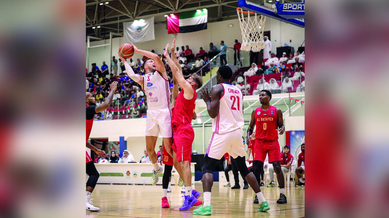 من لقاء الشارقة والبطائح في نصف نهائي «دولية الشارقة» لكرة السلة. من المصدر