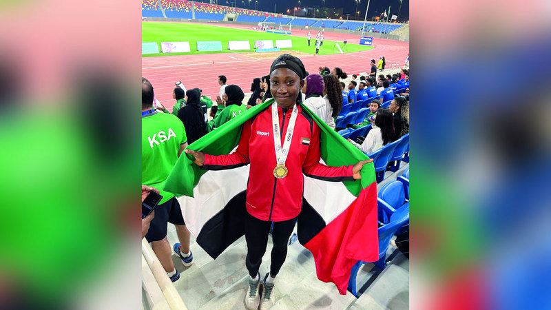 العداءة مريم كريم تزهو بالميدالية الذهبية في البطولة العربية للناشئين. من المصدر