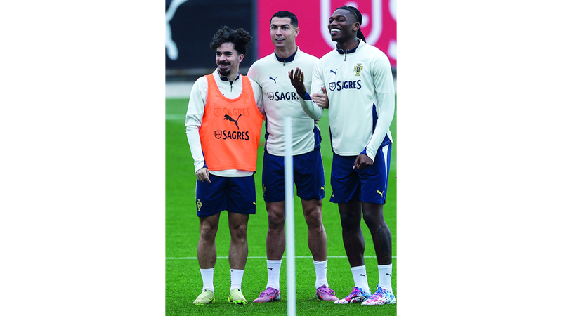 ثلاثي منتخب البرتغال فيتينيا وكريستيانو رونالدو ورافائيل لياو يستعدون لمواجهة أيرلندا. إي.بي.إيه