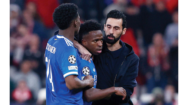 فينيسيوس يتلقى المساندة من مدربه أربيلوا وتشواميني. رويترز