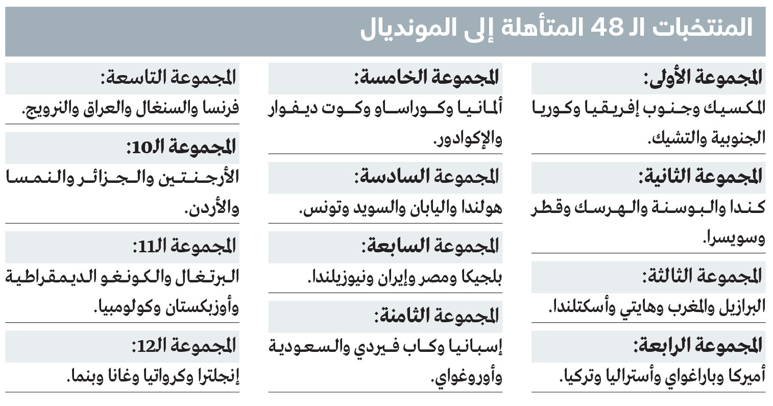 واكتملت المنتخبات الـ48 المتأهلة إلى كأس العالم ولن تكون إيطاليا من بينها، فيما أغلب كبار الكرة العالمية حاضرون بقوة.