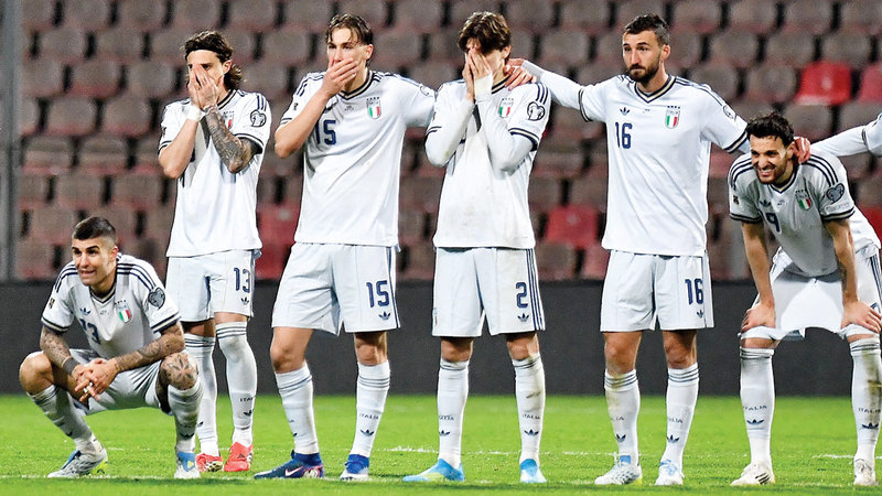 وأصيب المشجعون في روما بالذهول بعد أن خسرت إيطاليا أمام البوسنة بركلات الترجيح بنتيجة 4-1، أول من أمس، بعد التعادل 1-1، وهي الهزيمة الثالثة على التوالي في الملحق بعد خسارتيها أمام السويد ومقدونيا الشمالية.
