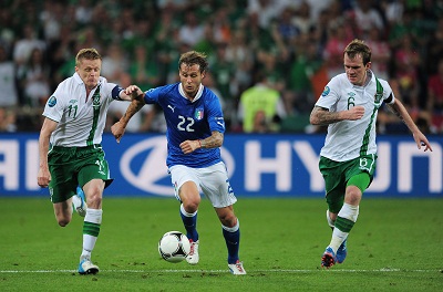 تأهل المنتخب الإيطالي إلى دور الثمانية ليورو 2012 عبر الفوز على نظيره الأيرلندي بهدفين نظيفين أمس، في بوزنان في الجولة الثالثة الأخيرة من مباريات المجموعة الثالثة للبطولة.