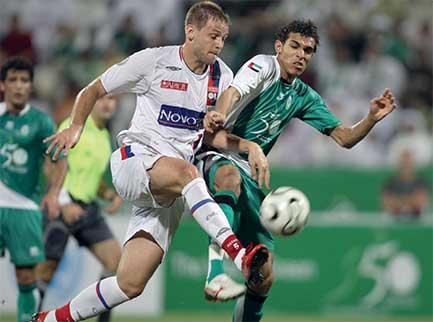 وليد عباس خلال مشاركته في احتفالية الشباب أمام فريق ليون الفرنسي. تصوير: مصطفى قاسمي