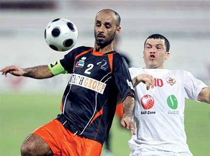 لاعب عجمان عبدالرحمن إبراهيم يقطع الكرة أمام أندرسون. تصوير: عمران خالد