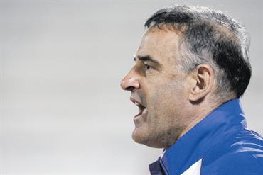 لوكا راضٍ عن مستوى لاعبي النصر. تصوير: أسامة أبوغانم