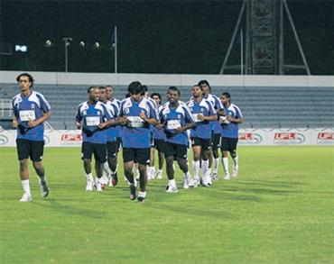 تدريب المنتخب الوطني تأثر سلباً بصوت الموسيقى المرتفع. تصوير: سالم خميس