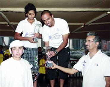 وقام الشيخ زايد بن مكتوم بن راشد آل مكتوم، خلال حضور منافسات سباق دبي (الجولة الاولى لبطولة الإمارات للدراجات المائية) الذي جرت أحداثه في الميناء السياحي يوم السبت الماضي، بتكريم البطل الصاعد برفقة سعيد حارب المدير التنفيذي للنادي.