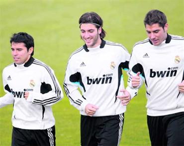 لاعبو ريال مدريد خلال تدريبات يوم أمس. أ.ف.ب