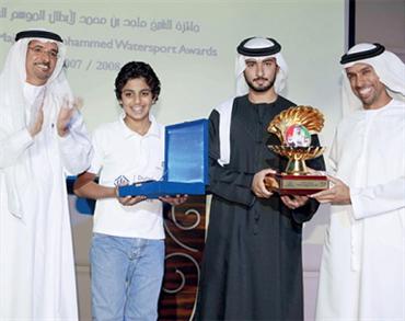 ماجد بن محمد لدى تكريمه أبطال الموسم البحري. من المصدر