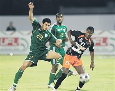 لاعب عجمان غريب حارب في صراع مع عبدالله صقر. تصوير: غلام كاركر