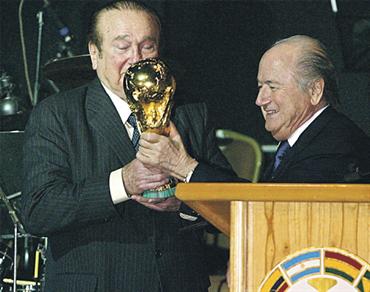 جوزيف بلاتر خلال جولة للاطمئنان على استعداد البرازيل لمونديال .2014 أ.ف.ب