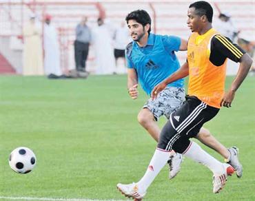 حمدان بن محمد يـــشارك لاعبي الأهلي حصّة تدريبية