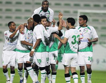 لاعبو الشباب يحتفلون بهدف مهرداد أولادي. تصوير: مصطفى قاسمي