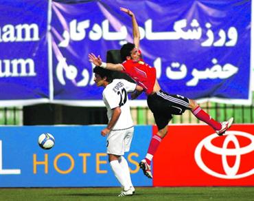 لاعب الأهلي يوسف جابر يتعرض للإعاقة من المهاجم الإيراني. خاص ــ الإمارات اليوم