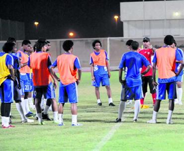 مهدي علي يقود تدريبات منتخب الشباب. من المصدر