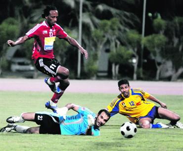 فيصل خليل في طريقه إلى تسجيل الهدف الثالث للأهلي في شباك عبدالباسط محمد. موقع الأهلي