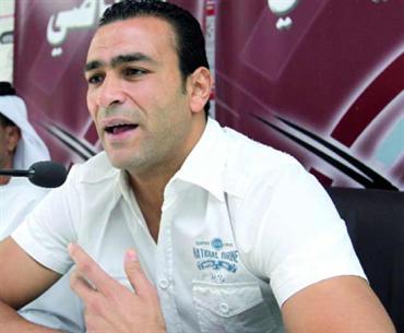 عصام الحضري يتحدث في المؤتمر الصحافي بنادي الوحدة. تصوير: جوزيف كابيلان