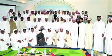 منصور بن محمد يتوسط متطوعي المونديال. من المصدر