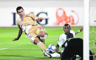 ساند يتابع كرة الهدف العيناوي الثاني في شباك الحارس وليد عبدالله. تصوير: إريك أرازاس