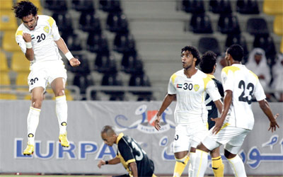 فاضل أحمد يحتفل بتسجيل هدف الوصل الأول. أ.ف.ب