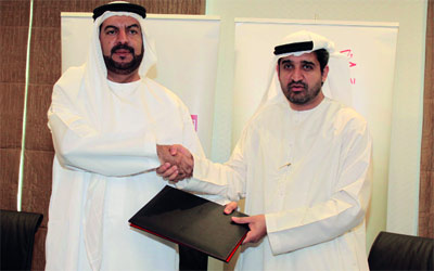 الشريف (يمين) والمهيري بعد توقيع مذكرة التفاهم. من المصدر