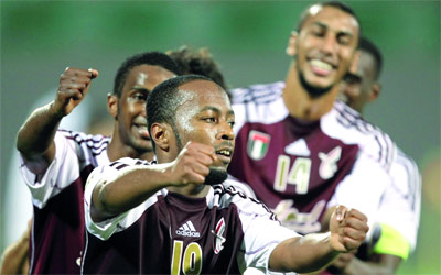 إسماعيل مطر يقود قطار فرح لاعبي الوحدة. تصوير: جوزيف كابيلان