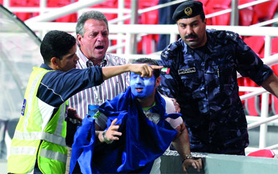 واستوقفت الشرطة المشجع الايراني الذي كان يتوشح بعلم بلاده قبل أن يصل الى قائد فريق الاستقلال وتم إخراجه من أرض الملعب.