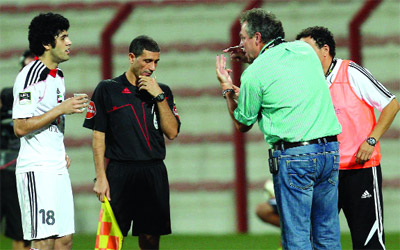 براغا يوجه لاعب الجزيرة عبدالله موسى. تصوير: ساتــــــــــــــــــــــــــــــــــــيش كومار