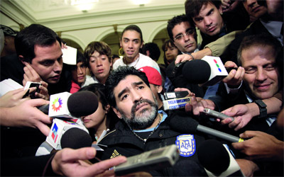 مارادونا غاضب لإلغــاء مباراة الأرجنـتين مــع الإمـارات