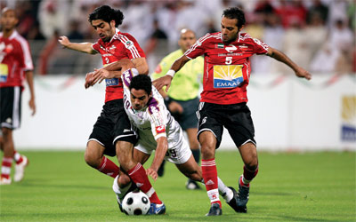 علي عباس (يسار) في مباراة أمام العين. الإمارات اليوم