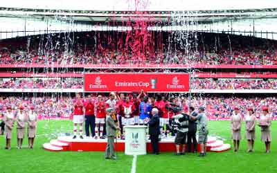 يشهد استاد الإمارات (ملعب الأرسنال) في لندن منافسات حامية يومي السبت 31 يوليو الجاري والأحد الأول من أغسطس المقبل بين أربعة من أقوى فرق الأندية الأوروبية للفوز بلقب بطولة كأس طيران الإمارات، التي ترعاها الناقلة للسنة الرابعة وتقام قبيل انطلاق الموسم الكروي في أوروبا.