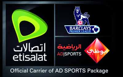 شعارات «اتصالات» و«أبوظبي الرياضية» والدوري الانجليزي. من المصدر