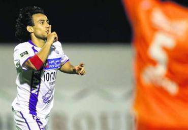 فالديفيا يحتفل على طريقته الخاصة بعد تسجيله هدفين للزعيم. تصوير: أسامة أبوغانم