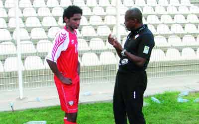 المدرب عيد باروت يوجّه أحد اللاعبين. من المصدر