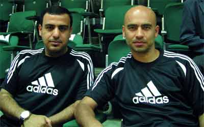 الزبير «يمين» ومعه الحكم الدولي النعيمي. الإمارات اليوم