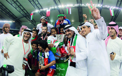 أسرة الكرة الإماراتية متوجة بكأس الخليج الأولمبية. أ.ف.ب