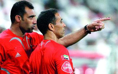 بهروز (يسار) أشاد بدعم الاتحاد ولجنة الحكام لقضاة الملاعب. الإمارات اليوم