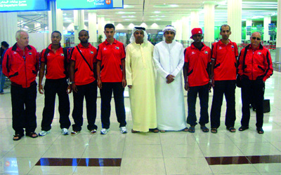 ويرأس البعثة أمين سر الاتحاد سعد المهيري، وضمت كلاً من علي غزوان إدارياً والمدربين فاسكو وتوبازوف والمدلك شريف كتو، واللاعبين عمر السالفة ومحمد عباس وبلال السالفة وأحمد صنقور وموسى إبراهيم وسيف الراشدي ويوسف خميس وماجد عباس.