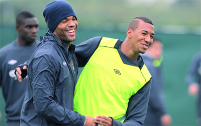بواتنغ «يمين» خلال حصة تدريبية لمانشستر سيتي. أ.ف.ب