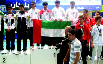 حقق منتخب المبارزة الوطني المركز الأول والميدالية الذهبية في منافسات الفرق، ضمن منافسات البطولة العربية الـ17 للشباب والناشئين، التي تستضيفها العاصمة اللبنانية بيروت بمشاركة 13 دولة عربية، هي: الإمارات ومصر والأردن والجزائر والسعودية والكويت والعراق والبحرين وقطر واليمن وفلسطين وسورية، بالإضافة الى لبنان مستضيف البطولة. ومثل المنتخب اللاعبون: عبدالله الحمادي وعلي ناصر المنصوري وماجد سلطان المنصوري وعلي الحمادي الذين تمكنوا من تحقيق إنجازات قياسية بفوزهم على كل من الكويت ومصر والسعودية في مباريات قوية اتسمت بالندية والإثارة.