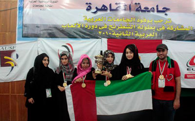وتم تتويج الفتيات في الحفل الختامي للعبة الشطرنج بجامعة القاهرة حيث تم اعلان حصولهن على المركز الاول عقب الفوز على فتيات الفريق المصري بنقطتين لنقطة ليرتفع رصيد الامارات في نهاية بطولة الدورة الى 12نقطة تليها المغرب تسع نقاط ثم العراق فمصر .
